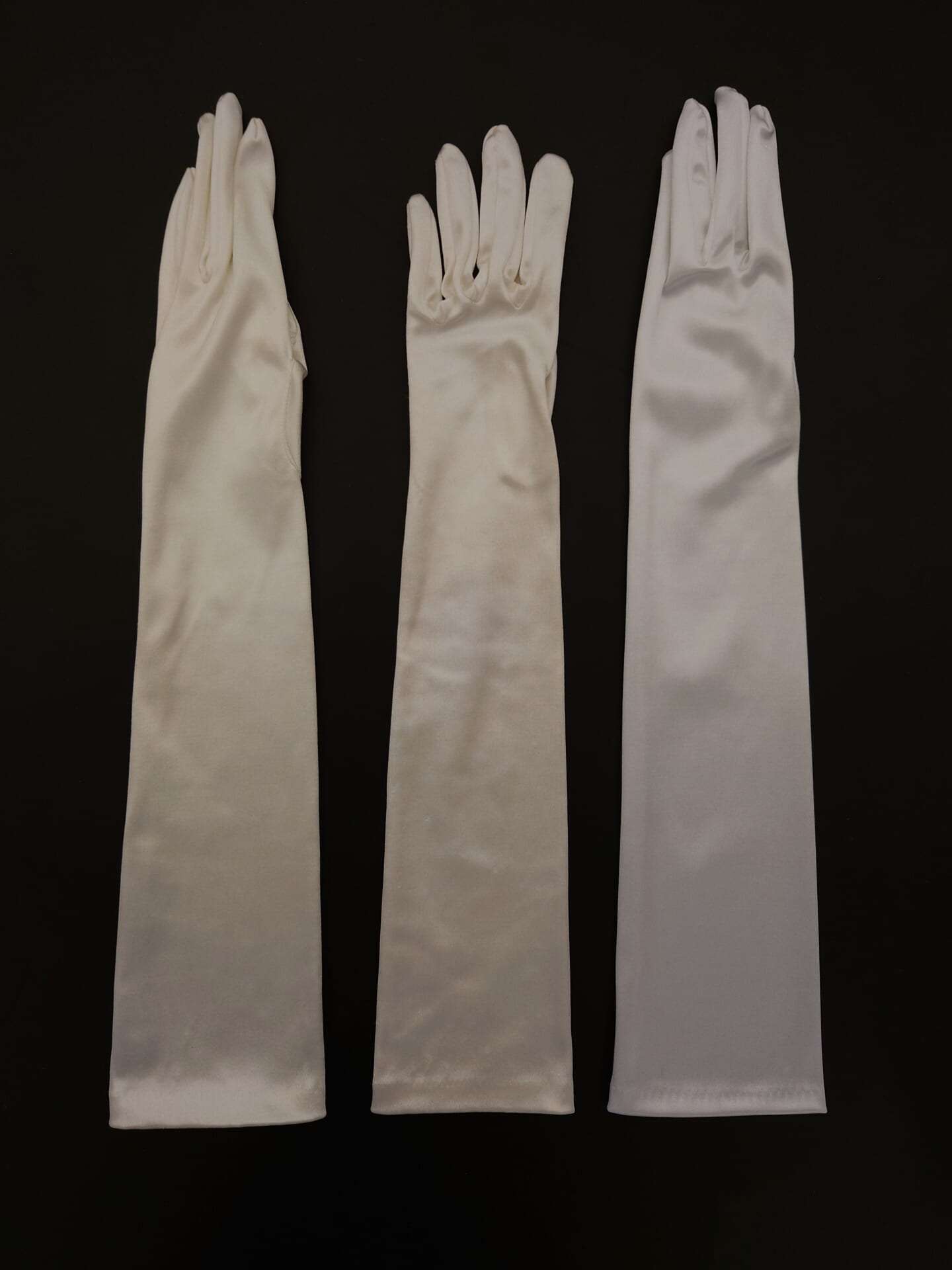 クラシカルで格式高いスタイルを求める花嫁さまに人気の50cm丈。ロング丈ならではの存在感があり、王道のチャペル挙式にもふさわしい品格を演出します。サテンの艶が腕をしなやかに見せ、写真映えも抜群。カラーは WH・OW・IV をご用意。