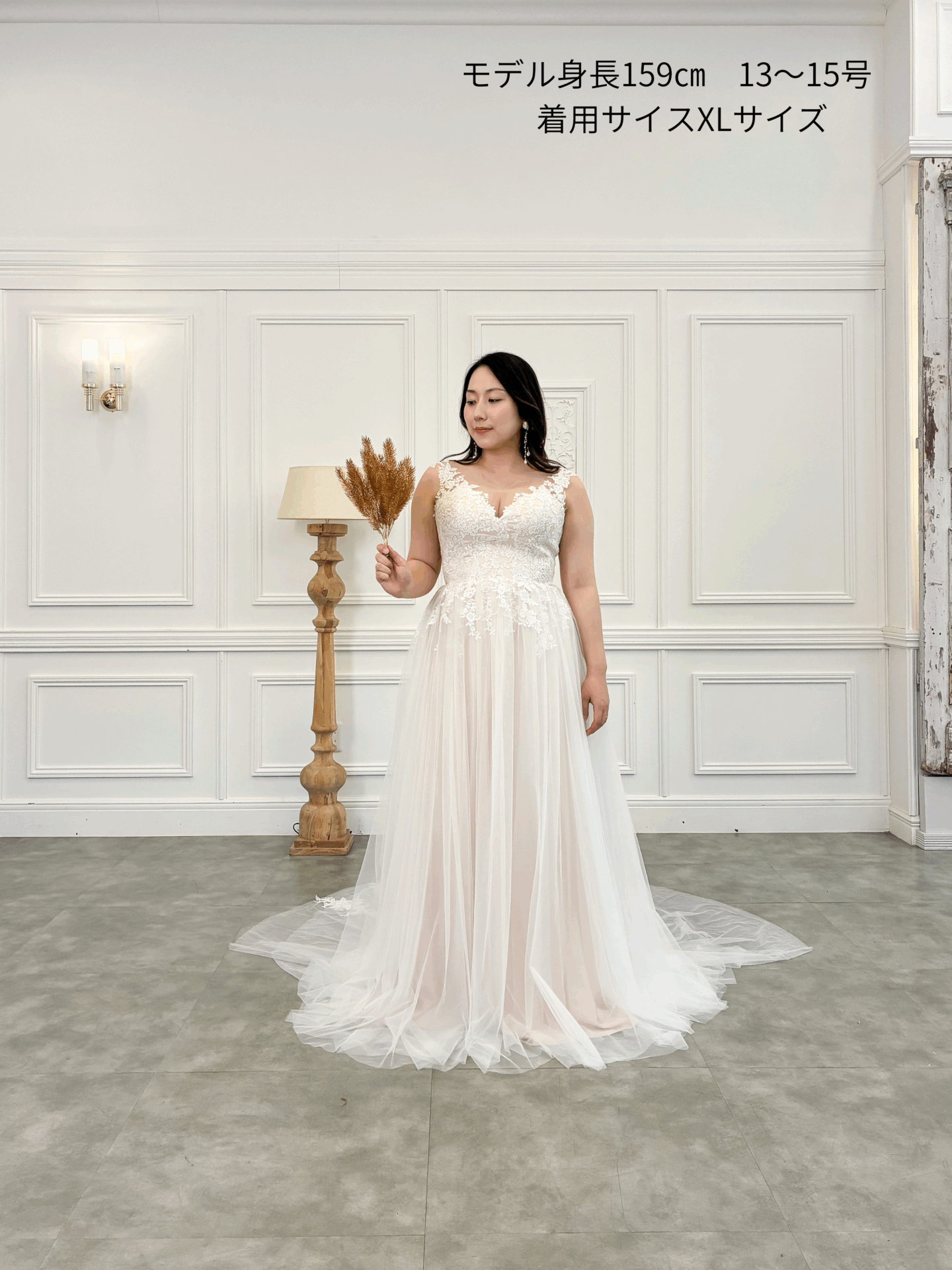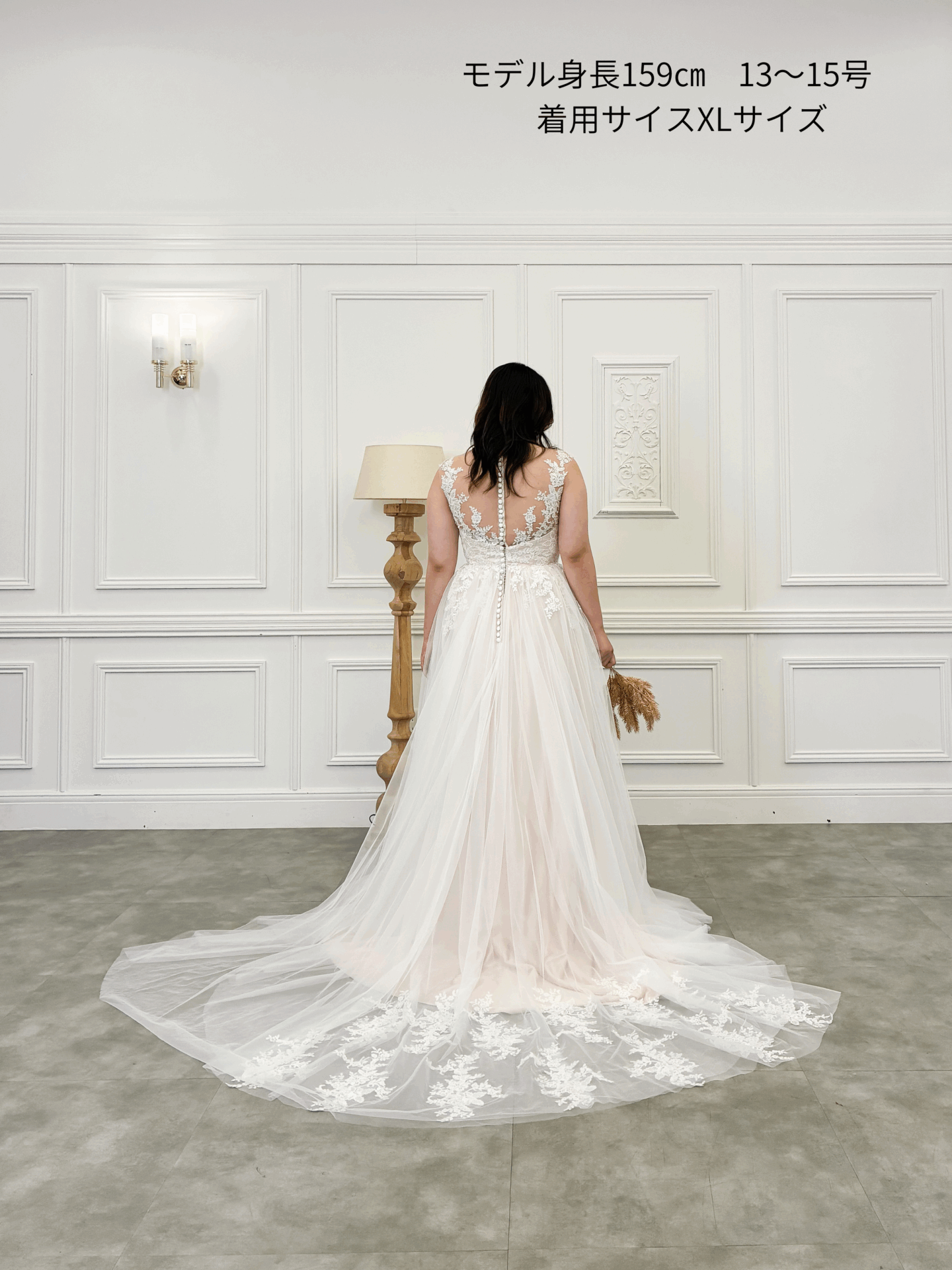 素材にはやわらかなチュールと繊細なレースを使用しており、長時間の着用でも疲れにくく、リラックス感のある着心地。ナチュラルウェディングやガーデン挙式、レストランでのパーティーにもぴったりです。