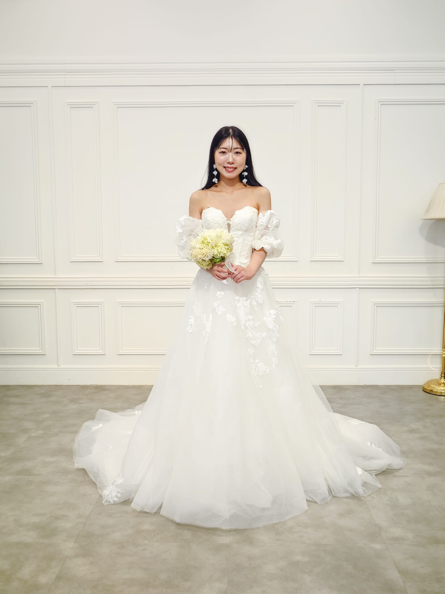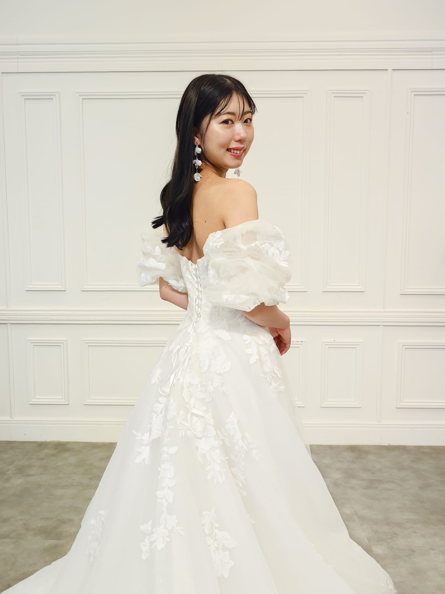 チャペルウェディングやクラシカルな会場はもちろん、前撮りやフォトウェディングにもぴったり。華やかさと繊細なディテールを両立した、特別な日にふさわしいドレスです。