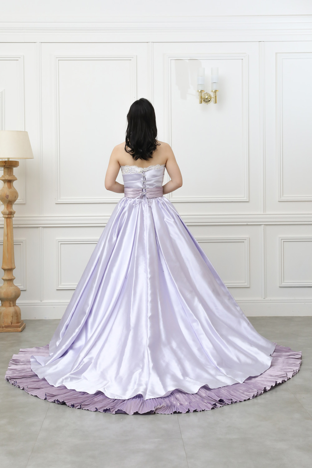 【ナチュラルビューティー】やわらかなラベンダーと、光沢のあるサテン素材が織りなす上品な輝き。