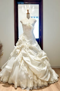 印象的な色使いと立体感のあるディテールは、前撮りやフォトウェディング、ナイトパーティーやお色直しにもぴったり。