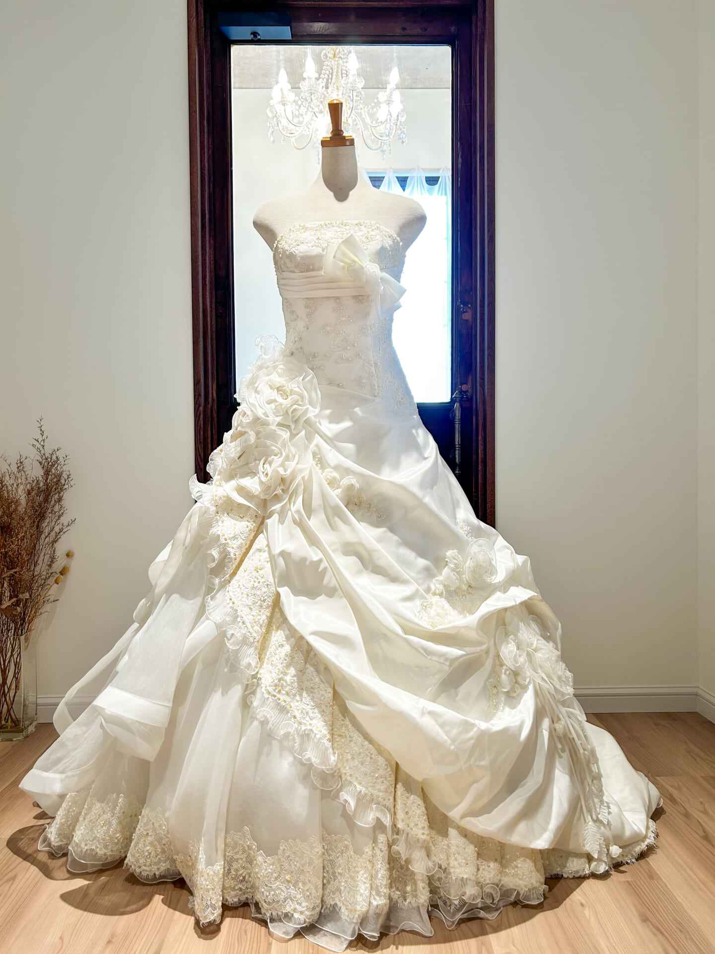 ※こちらは式場で使用されたUSEDドレスです。細かな使用感がある場合がございますが、すべて丁寧にメンテナンス済みです。