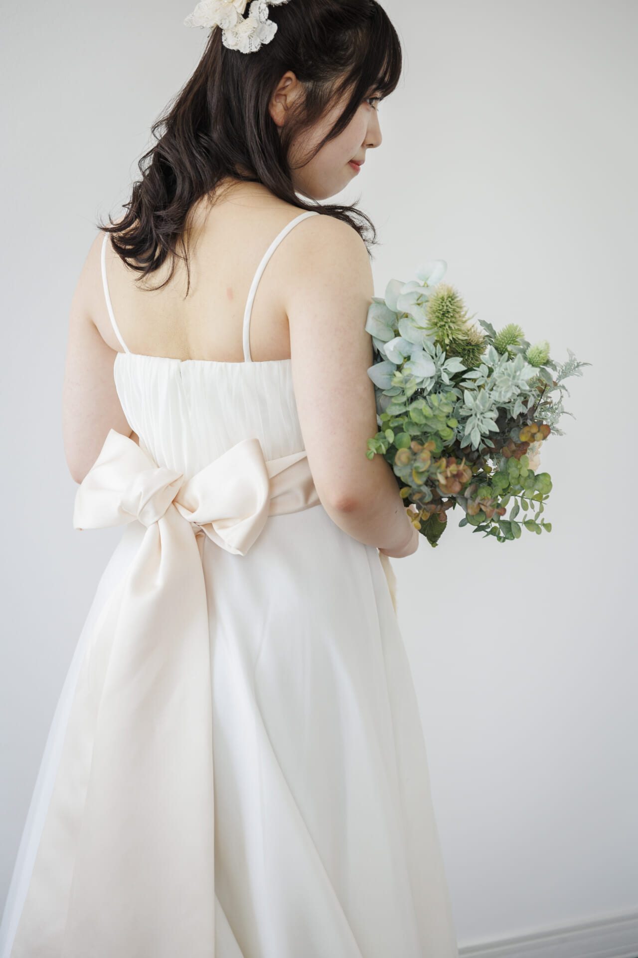 「飾らない美しさこそ、私らしさ。やさしく包みこむエンパイアドレス」