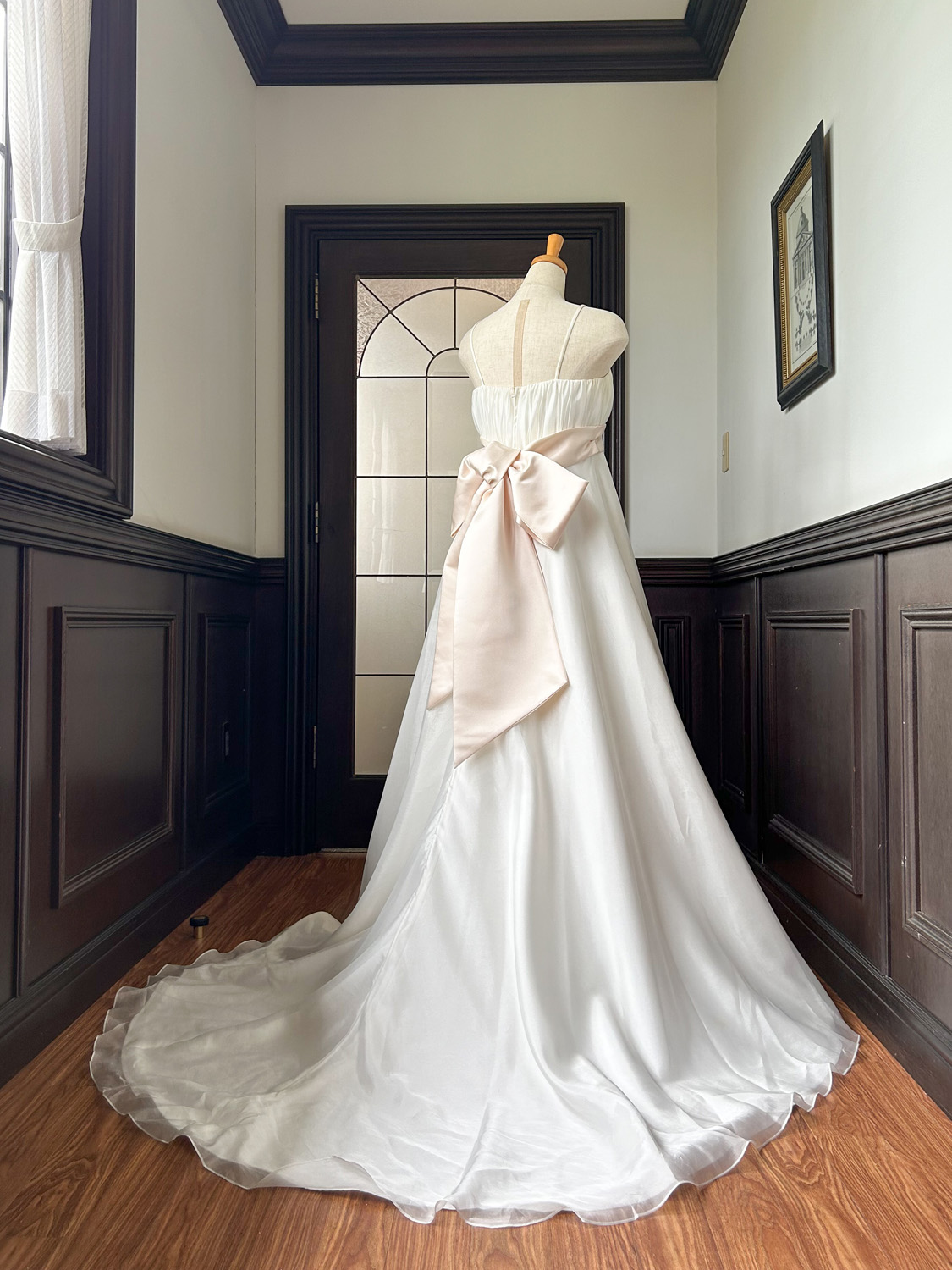 そしてこのドレス最大のチャームポイントは、バックスタイルにあしらわれた大きなリボン。
