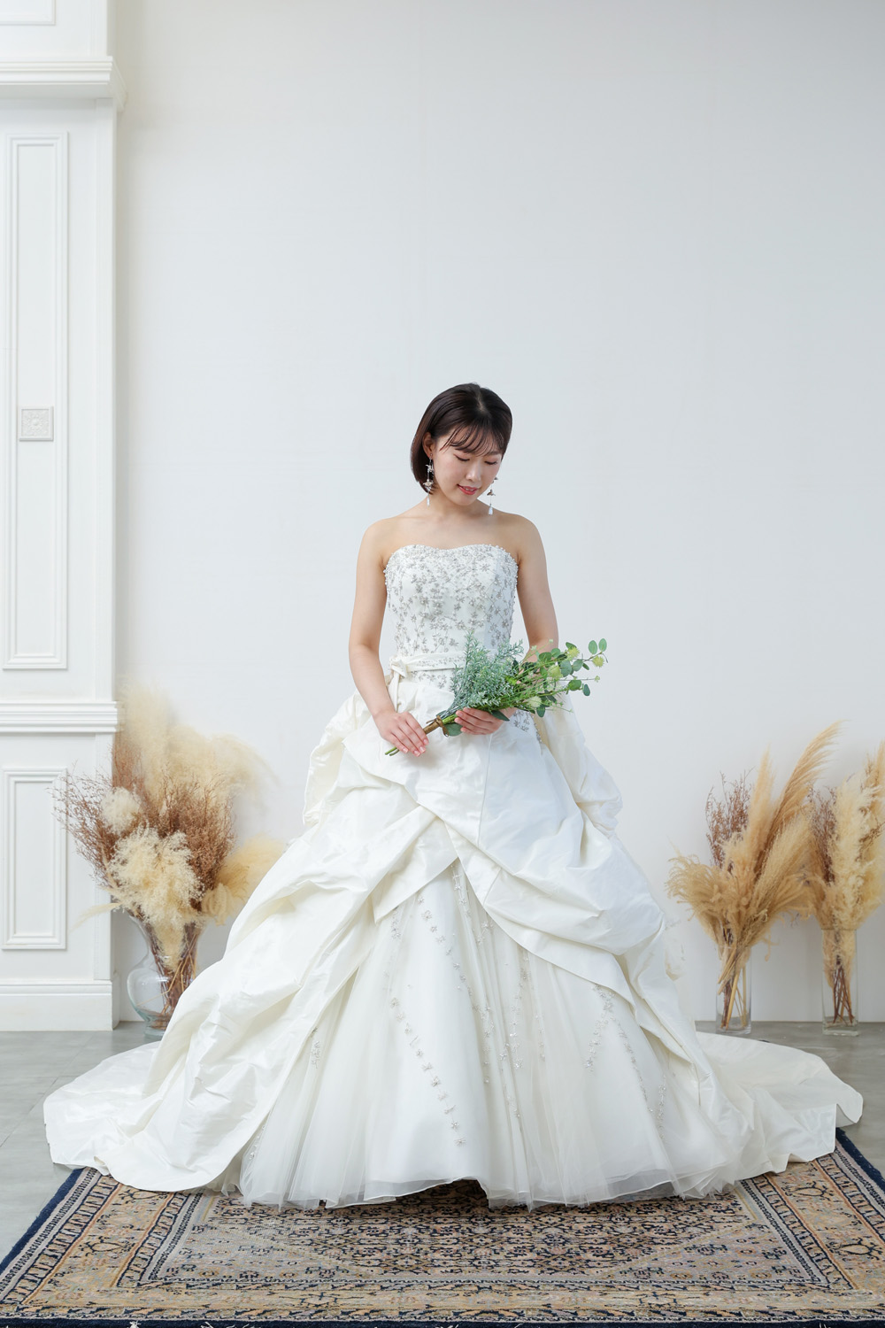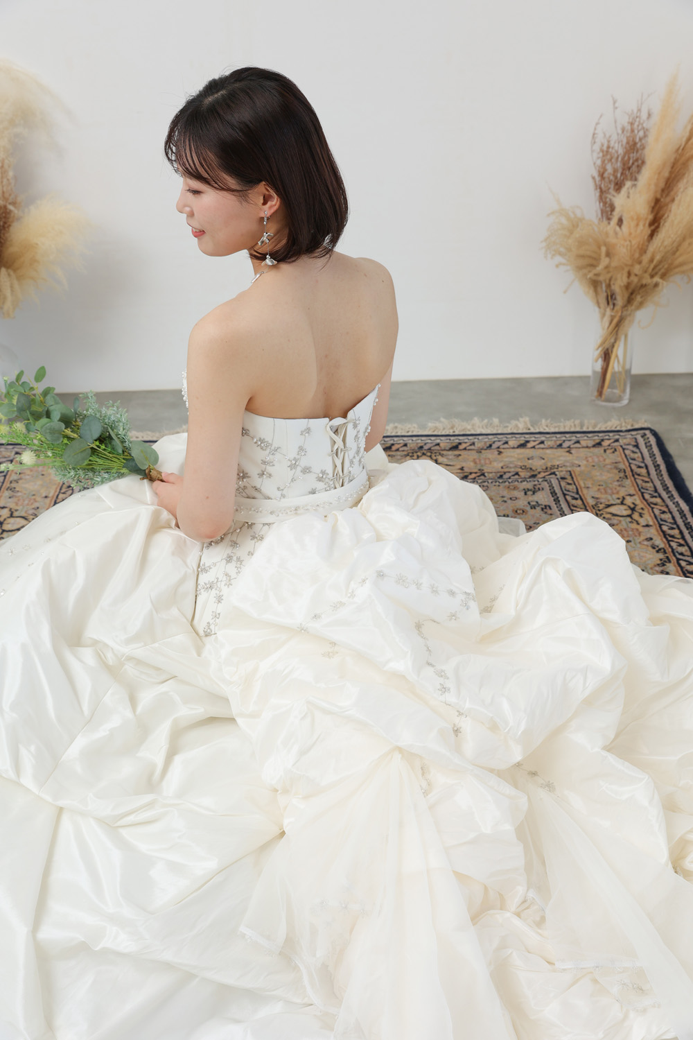 さらに程よいフィット感と快適な着心地で、長時間のご着用でも美しいシルエットを保ち続けられるよう工夫されています。花嫁の一日を心地よくサポートし、特別な瞬間を安心して迎えていただけるドレスです。