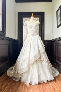 このドレスがまとう静かな輝きが、花嫁の内側からにじみ出る美しさをそっと引き立ててくれます。