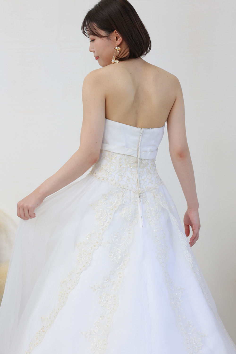バックスタイルはビスチェタイプで、すっきりとした背中のラインをつくります。
