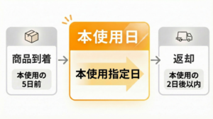 試着目的を超えた使用・汚損・返却遅延は規定料金をご請求します